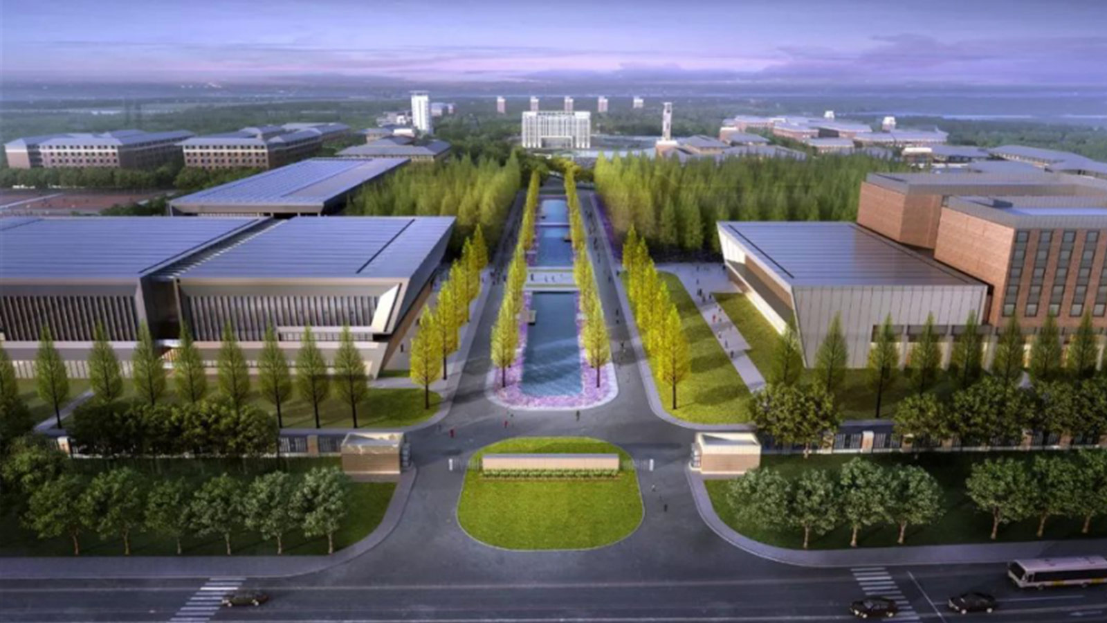 江陰校區(qū)規(guī)劃構(gòu)想體現(xiàn)南理工校園文化與江陰地域文化的融合,在縱橫軸線導(dǎo)引下,圍繞以水、山、林構(gòu)成中央景觀,南北展開(kāi)書(shū)院聚落,規(guī)劃理念中西合璧,大疏大密。校前區(qū)廣場(chǎng)建筑設(shè)計(jì)體現(xiàn)法式建筑傳統(tǒng),打造有活力和創(chuàng)新精神的校園文化。景觀設(shè)計(jì)延續(xù)主校區(qū)校園文化,再現(xiàn)校風(fēng)門(mén)、水杉林等特色標(biāo)志性景觀。